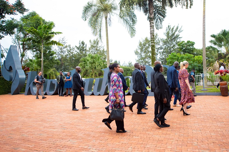 Lt Gen Mamadi Doumbouya, yari aherekejwe na Minisitiri w’Ububanyi n’Amahanga n’Ubutwererane, Dr Vincent Biruta, Minisitiri w’Ubumwe bw’Abanyarwanda n’Inshingano Mboneragihugu, Dr Bizimana Jean Damascène n’abandi bayobozi bari mu itsinda bari kumwe i Kigali.