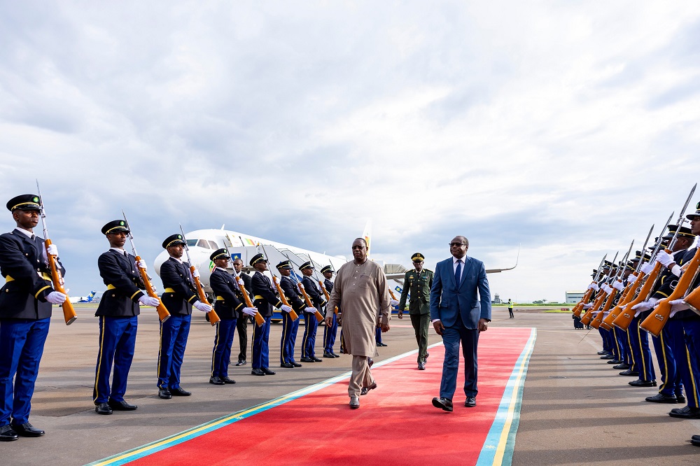 Perezida Macky Sall akigera mu Rwanda, yakiriwe na Minisitiri w’Imari n’Igenamigambi, Dr. Uzziel Ndagijimana.