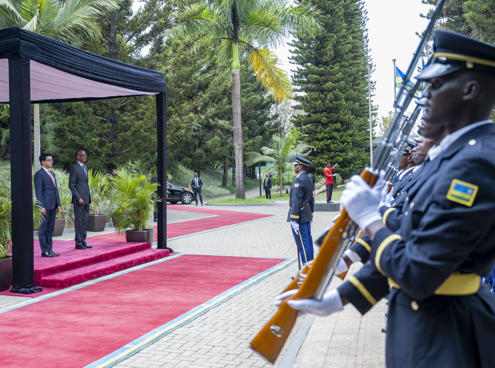 Nyuma yo kumwakira mu cyubahiro, Abakuru b’Ibihugu byombi bahise bagirana ibiganiro byabereye mu muhezo, icyakora ibiro by’Umukuru w’Igihugu cy’u Rwanda (Village Urugwiro) bikaba byatangaje ko baganiriye ku mubano w’ibihugu byombi.