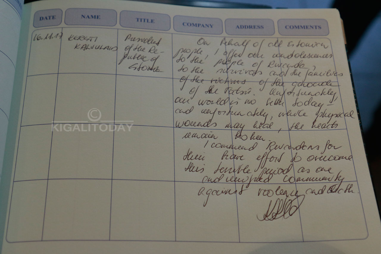 Yagize ati "Mu izina ry’abaturage ba Estonia nihanganishije Abanyarwanda, abarokotse n’imiryango y’abarokotse Jenoside yakorewe Abatutsi. Ndashimira ubutwari Abanyarwanda bagaragaje mu gukira ibikomere."