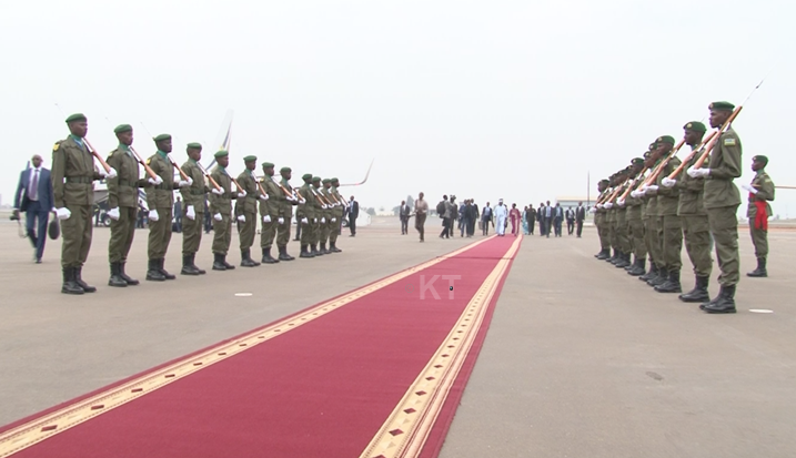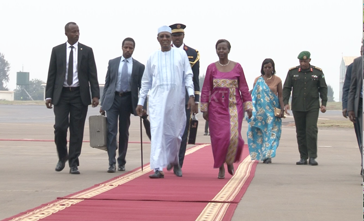Ageze ku Kibuga cy’Indege Mpuzamahanga cya Kigali i Kanombe, Perezida Idriss Déby Itno yakiriwe na Minisitiri w’Ububanyi n’Amahanga, Louise Mushikiwabo ari kumwe n’Umugaba Mukuru w’Ingabo z’u Rwanda, Gen. Patrick Nyamvumba ndetse n’Umuyobozi Mukuru wa Polisi y’u Rwanda, IGP Emmanuel Gasana.