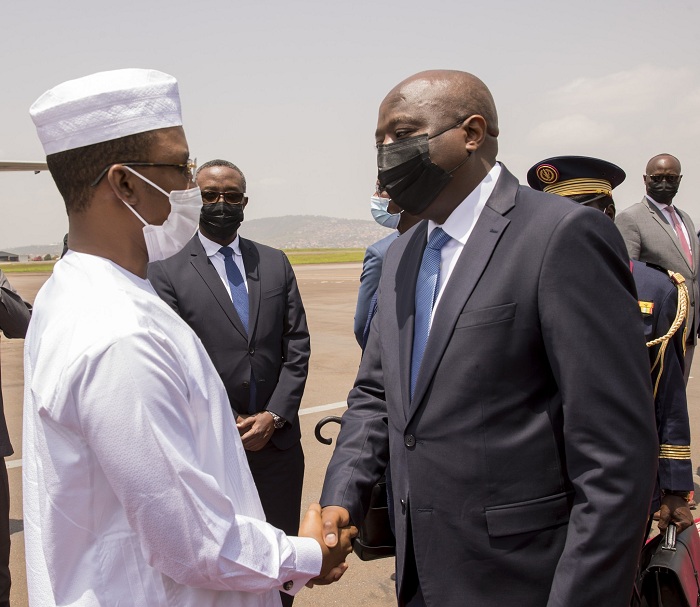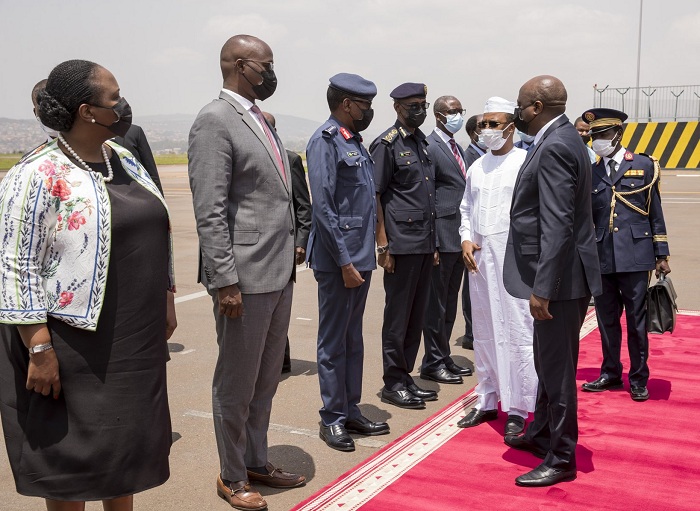 Ku Kibuga cy’indege mpuzamahanga cya Kigali, Gen. Mahamat yaherekejwe na Minisitiri w’Intebe, Dr Eduard Ngirente, n’abandi bayobozi batandukanye.