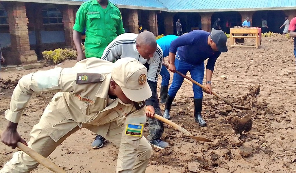 Yagize ati “Muze dufatanye umuganda wo gusibura inzira, kuvana icyondo mu mashuri, gutunganya aho imiryango yimuriwe, dukomeze tubafashe, kandi tubereke Imana ibakomeze kuko ibiza byarabahekuye bikabije.”