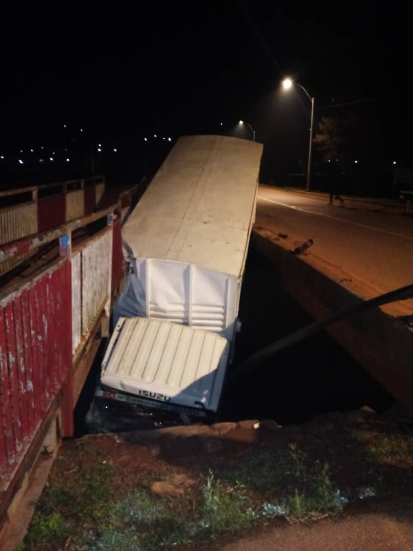 Imodoka nini yo mu bwoko bwa Isuzu FRR yari itwawe n’umunyamahanga, iturutse mu Karere ka Gicumbi yerekeza mu mujyi wa Kigali, yakoze impanuka, aho yagonze ibyuma by’ikiraro irakirenga ibihagamamo hagati.