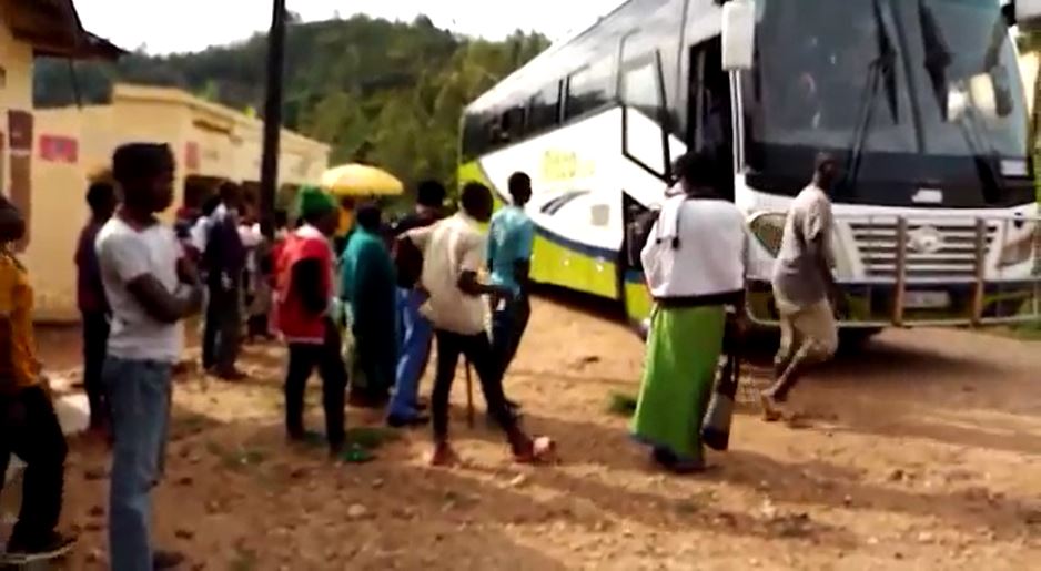 Abaturage bayihawe bagaragaje akanyamuneza nk’uko bigaragara mu mashusho yafashwe ubwo imodoka nini yo mu bwoko bwa Ritco yari iparitse ku muhanda iri gushyiramo abagenzi.