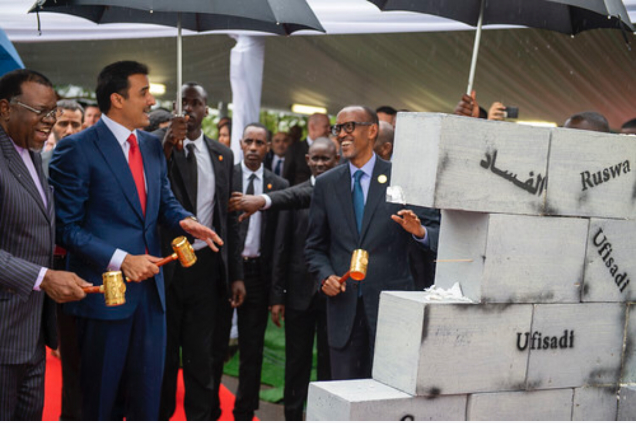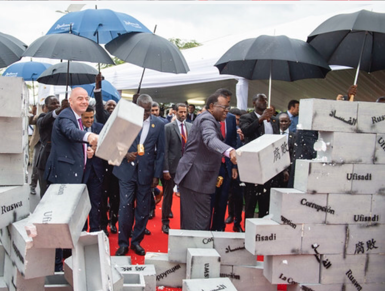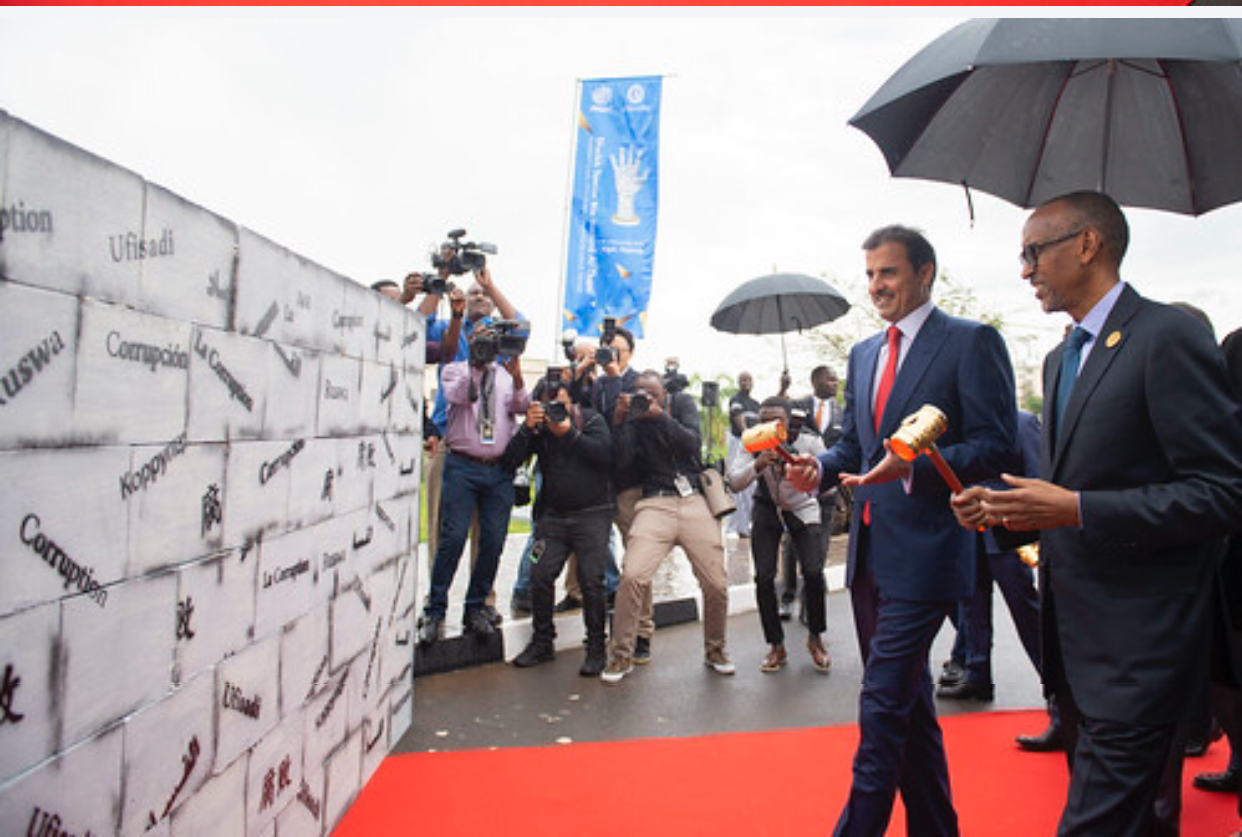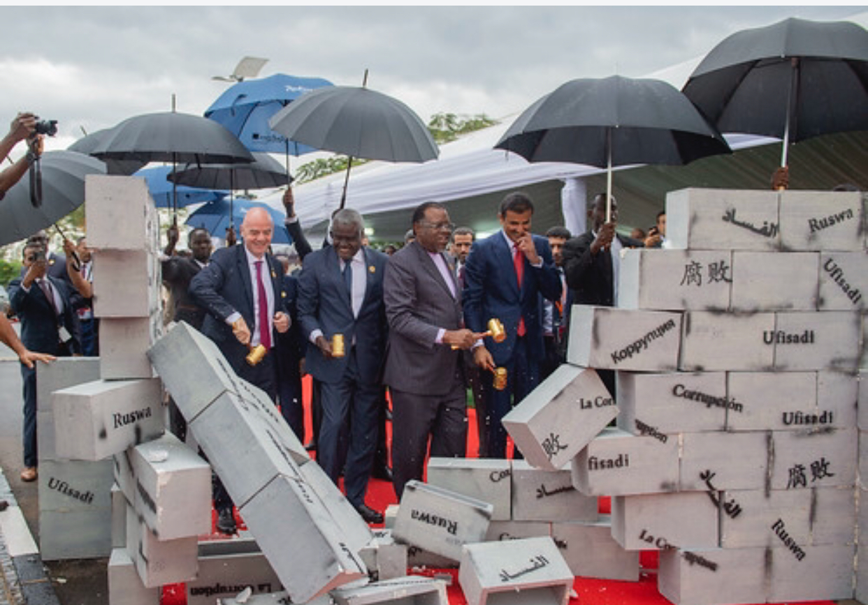 Nyuma yo kumurika icyo kirango abayobozi barimo Perezida Paul Kagame; Perezida wa Namibia, Hage Gottfried Geingob, Umuyobozi w’Ikirenga wa Qatar (Emir) Sheikh Tamim bin Hamad al Thani, Perezida w’Ishyirahamwe ry’Umupira w’Amaguru ku Isi, Gianni Infantino; na Perezida wa Komisiyo y’Umuryango wa Afurika yunze ubumwe (AU), Moussa Faki Mahamat; bafashe utunyundo basenya ikirango cya Ruswa mu Rwego rwo kugaragaza ko Bakeneye ibihugu bitarangwamo ruswa.