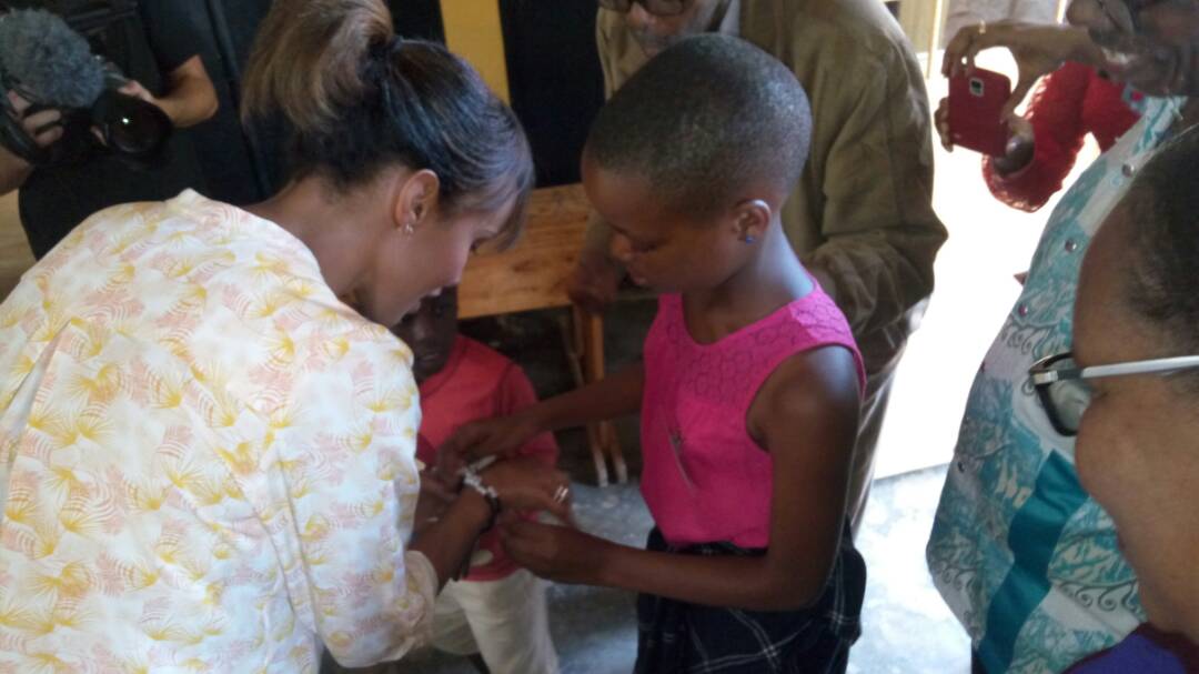 Ubwo Sonia Rolland yahageraga, abana baharererwa bamwakiriye maze bamuririmbira indirimbo yitwa You and Me (Njyewe na we).