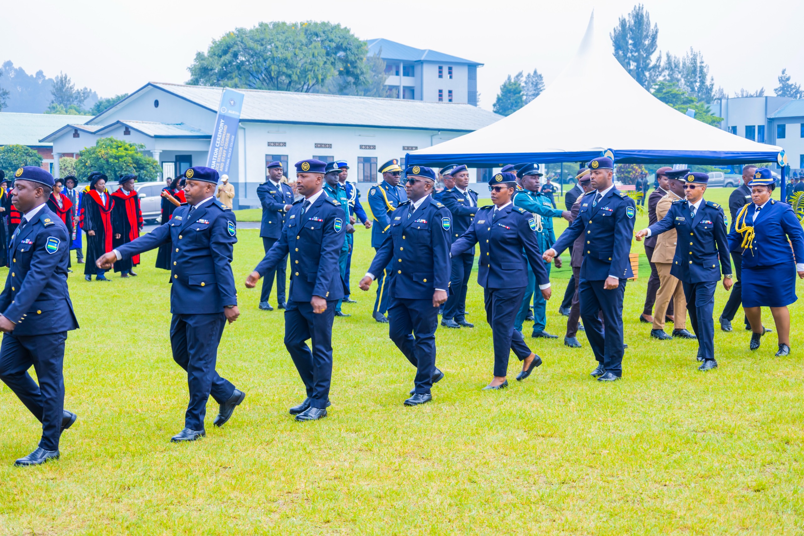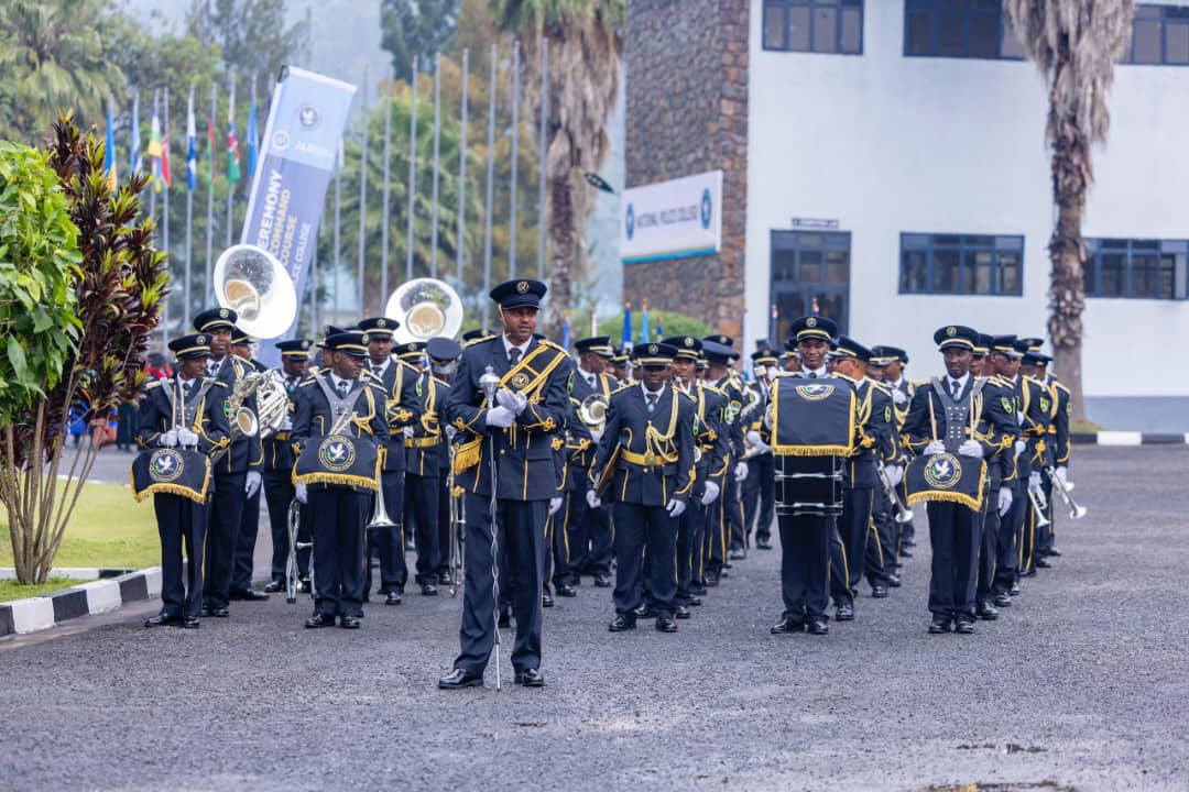 VIDEO - Ibirori byo gutanga impamyabumenyi kuri ba Ofisiye bakuru bamaze umwaka bahabwa amasomo mu ishuri rikuru rya Polisi i Musanze, byatangijwe n'akarasisi.