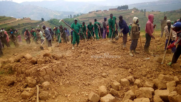 Mu gikorwa cy’umuganda haracukurwa umuyoboro ugeza amazi muri Poste de Sante ya Kiyanzi yabaye iya mbere mu gihugu itsindira ibihembo by’amarushanwa y’umuganda muri 2016/2017.