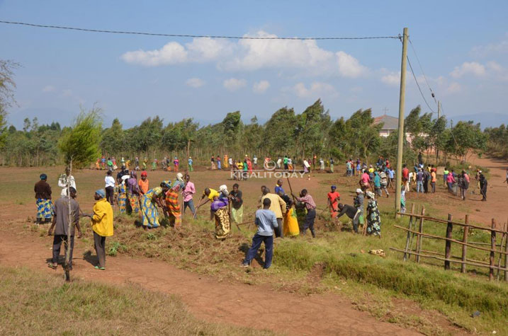 Umuganda wakorewe mu Kagari ka Rugari, ahacukurwa umuyoboro w’amazi ureshya n’ibirometero 6 kuva ahitwa Kanyogote kugera Nteko.