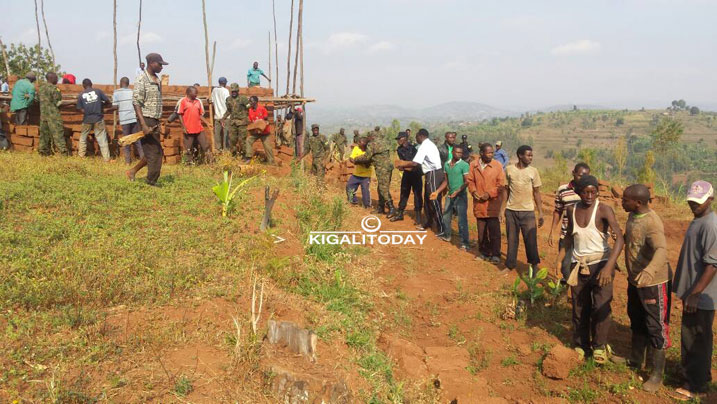 Minisitiri wa MINEACOM Kanimba Francois yifatanyije n’abaturage bo mu Murenge wa murenge wa Kigembe, mu Kagali ka Nyabikenke, ahari kubakwa amazu abiri y’abatishoboye.