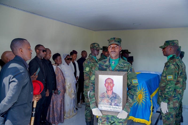 Urubuga rwa Twitter rw’Ingabo z’u Rwanda (RDF) dukesha iyi nkuru, ruvuga ko uyu munsi umubiri w’umusirikare w’u Rwanda wari mu gikorwa cyo kugarura amahoro, Sgt Tabaro Eustache, wagejejwe i Kigali uvuye muri Santrafurika.