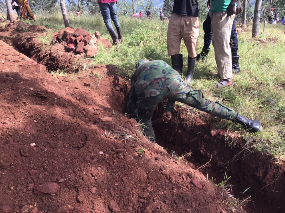 Guverineri w’Intara y’Iburasirazuba, Emmanuel K. Gasana, yifatanyije n’abaturage b’Akarere ka Kirehe, Umurenge wa Nasho, Akagari ka Cyambwe ahacukuwe hakanasiburwa imirwanyasuri.