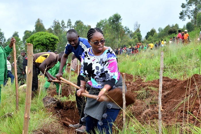 Mu Karere ka Ngoma, ubuyobozi bwifatanyije n’abaturage b’Umudugudu wa Nyagasozi, Akagari k’Akaziba, Umurenge wa Karembo, mu muganda wibanze ku gucukura imirwanyasuri kuri hegitari eshanu, mu rwego rwo gufata amazi yangiza imirima y’abaturage.