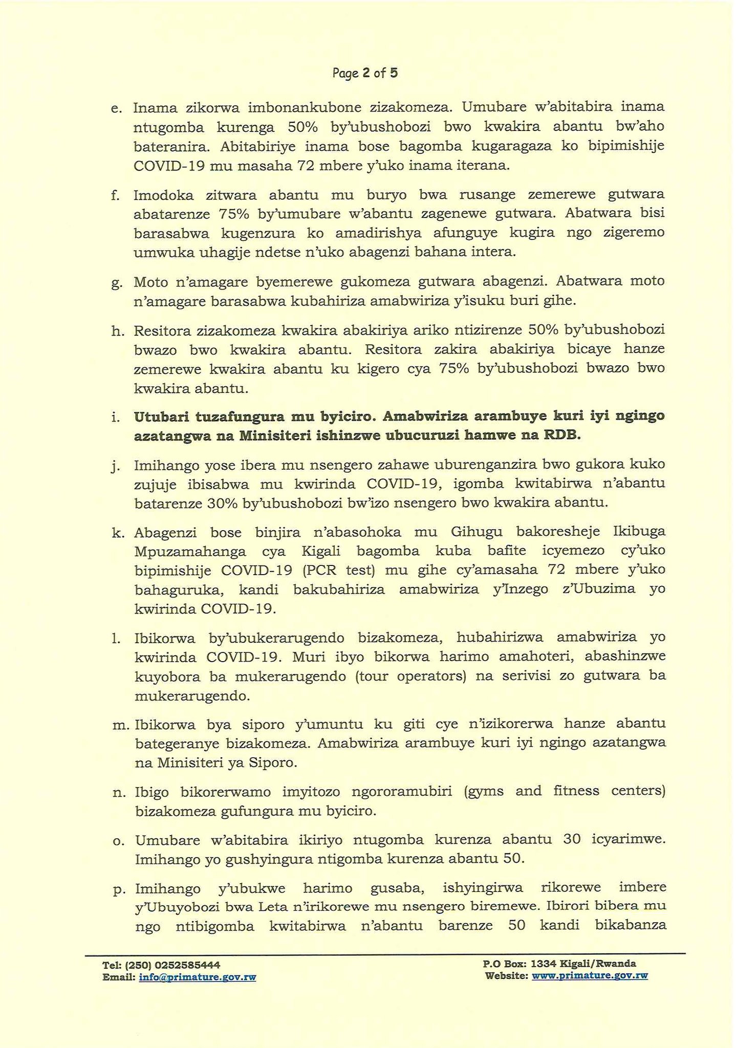 Utubari tugiye gufungura, ingendo ziremewe kugeza saa tanu i Kigali (ibyemezo by’Inama y’Abaminisitiri)