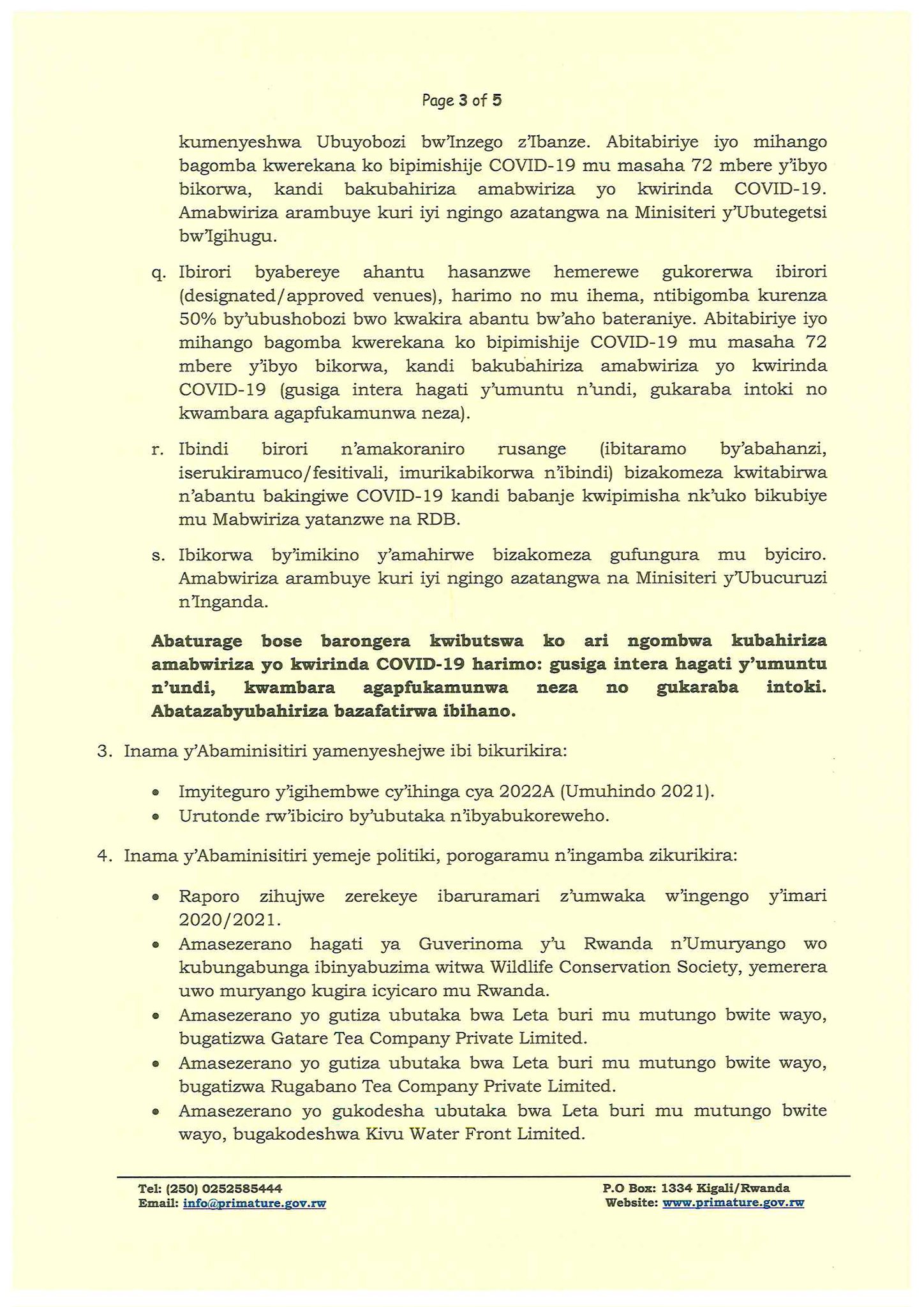 arko biriya bikorwa baba bavuze ko ibindi izind ngamba zijyanye nabyo ababishinzwe bajye bigira vuba wenda nko k’umunzi ukurikira uwo inama y’abaminisitiri ya teraniyeho babe batanze umurongo.