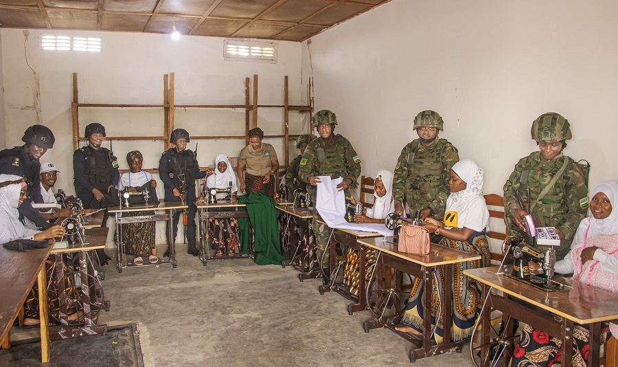 Inzego z’umutekano z’u Rwanda ziri muri Mozambique zashyikirije Koperative y’abagore (Cooperativa Moda do Litoral), imashini 10 zidoda n’ibikoresho byazo mu rwego rwo kubongerera ubushobozi n’ubumenyi bikajyana no kwinjiza amafaranga. Iyi koperative iherereye mu Karere ka Mocímboa da Praia mu Ntara ya Cabo Delgado.
