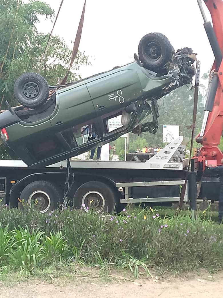 Mu muhanda wa Kaburimbo Kigali-Musanze ku kiraro cya Mukungwa Habereye Impanuka y’imodoka Nissan Patrol ifite plaque yitwa SAMBORA(private plate number) ya Hotel yavaga Kigali yerekeza Musanze igiye kuri Hotel iherereye mu Kinigi yitwa SAMBORA Hotel.