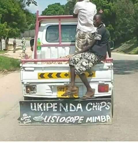 Uwo ashobora kuba yaranditse ayo magambo ku modoka ye, ashaka gukebura abakobwa bajya kurya amafiriti bagurirwa n’abasore. Gusa ntawuzi niba ari ukuri.