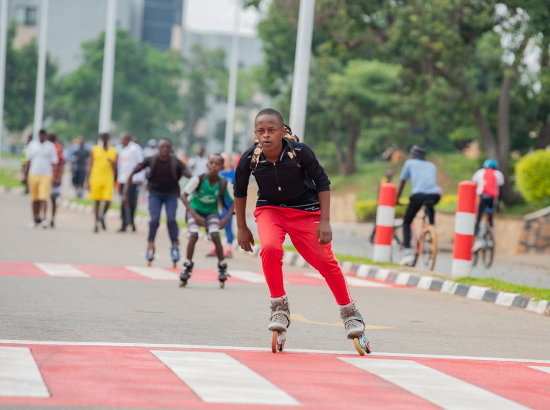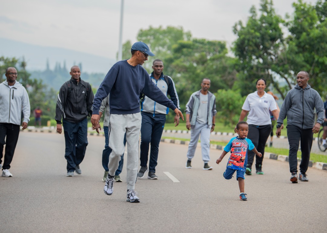 Perezida wa Repubulika y’u Rwanda Paul Kagame na Madame kuri iki cyumweru bifatanyihe n’abandi Banyarwanda n’Abanyamahanga batuye mu Rwanda muri Siporo rusange izwi nka ‘Car Free Day’ yitabiriwe n’abagenda n’amaguru, abagenda ku magare ndetse n’urubyiruko rugenda ku nkweto zifite amapine.