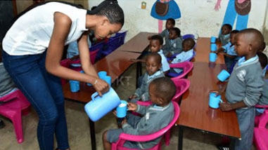 Miss Rwanda yasangiye amata n’abana biga mu ishuri ry’incuke
