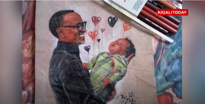 Yatewe ishema no gushushanya Perezida Paul Kagame ateruye umwuzukuru we