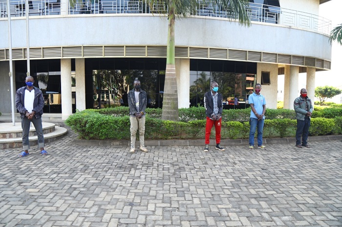 Polisi yerekanye itsinda ry’abantu bavugwaho kwambura abamotari babanje kubaniga
