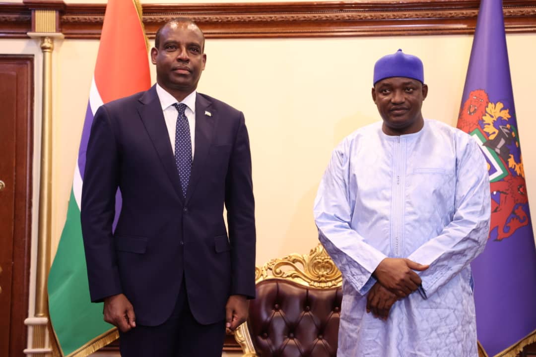 Ambasaderi Jean Pierre KARABARANGA uhagarariye u Rwanda mu Bihugu bya Senegal, Mali, Guinea Bissau, Gambia na Cabo Verde, yashyikirije Adama BARROW, Perezida wa Gambiya, impapuro zimuhesha uburenganzira bwo guhagararira u Rwanda muri Gambia.