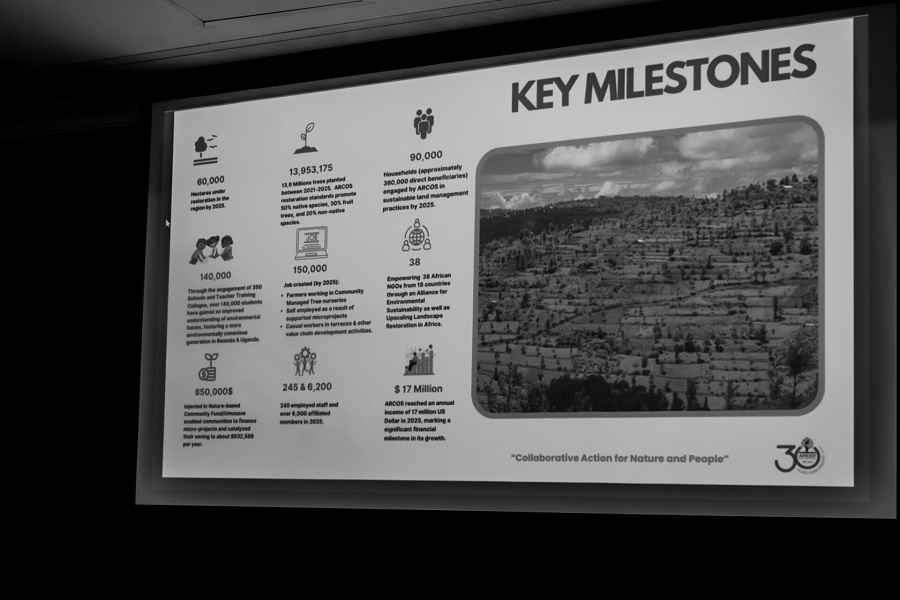 Umuyobozi Mukuru wa ARCOS (Albertine Rift Conservation Society), Dr. Sam Kanyamibwa, avuga ko uyu muryango ubu urimo kwizihiza imyaka 30 ubonye izuba, wavuye ku gitekerezo cy’umuntu umwe, ariko ubu ukaba waragutse ukageza ibikorwa byawo ku rwego rwa Afurika, akemeza ko ubufatanye n’abandi ari bwo bwatumye ibi bigerwaho.