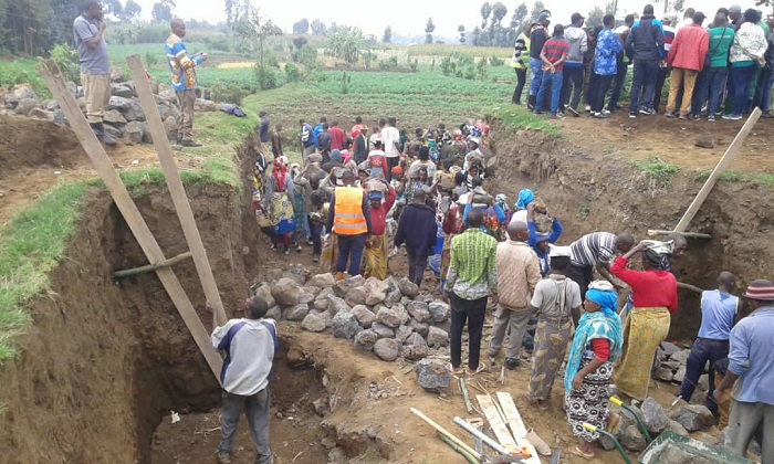 Mu muganda rusange usoza ukwezi kwa Mutarama 2020 mu Murenge wa Rugarama mu Karere ka Burera, hashyizwe ibuye ry’ifatizo ku mushinga wo kurinda abaturage amazi aturuka mu birunga yabangiririzaga akanabasenyera.