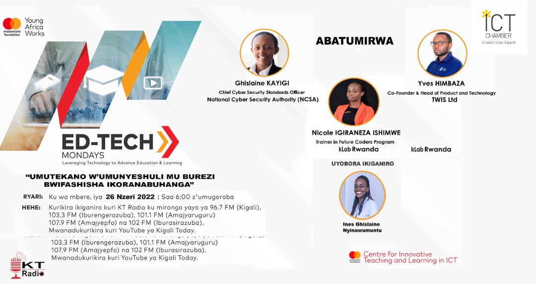 Igice cy’ikiganiro cya Ed-Tech cyo kuri uyu wa Mbere tariki 26 Nzeri 2022 kiribanda ku nsanganyamatsiko igira iti: “Umutekano w’umunyeshuri mu Burezi bwifashisha Ikoranabuhanga”.