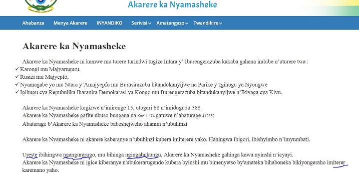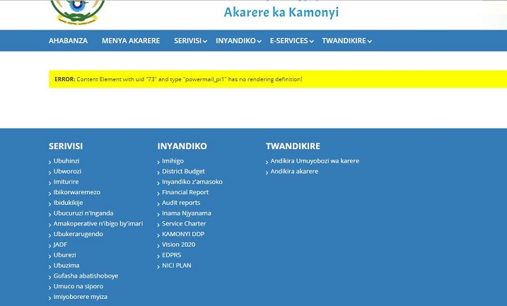 Imwe mu myandikire igaragara ku rubuga rwa Interineti rw’Akarere irakemangwa