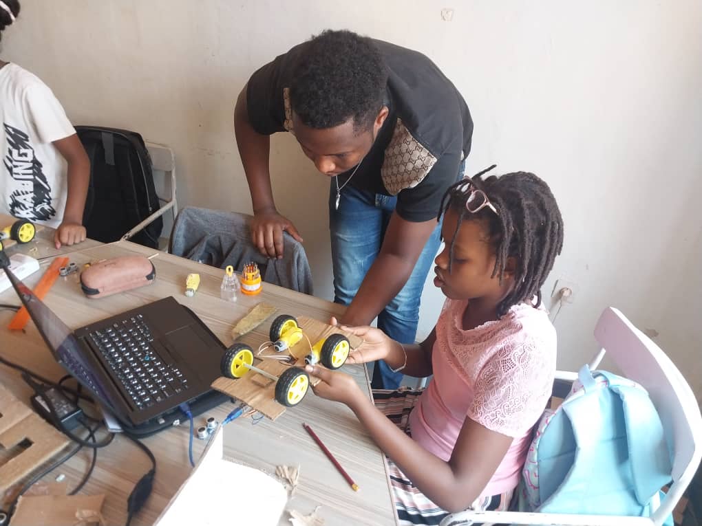 Umwe muri abo bana witwa Gahunde Isimbi Audrey w’imyaka 12 y’amavuko, yagize ati “Ibi bintu ndabikunda, kuko bimfasha kumenya utundi tuntu twinshi. Mu ishuri ibi bintu ntabwo tubyiga. Rero hano tuhungukira ubumenyi bwinshi. Hano twize nko kwatsa itara ukoresheje insinga. Aka kanya turimo turakora imodoka, twamenye uko moteri ikora, tumenya uko dukoresha amapine akagenda, tumenya n’ukuntu dukora porogaramu dukenera kuri mudasobwa.”