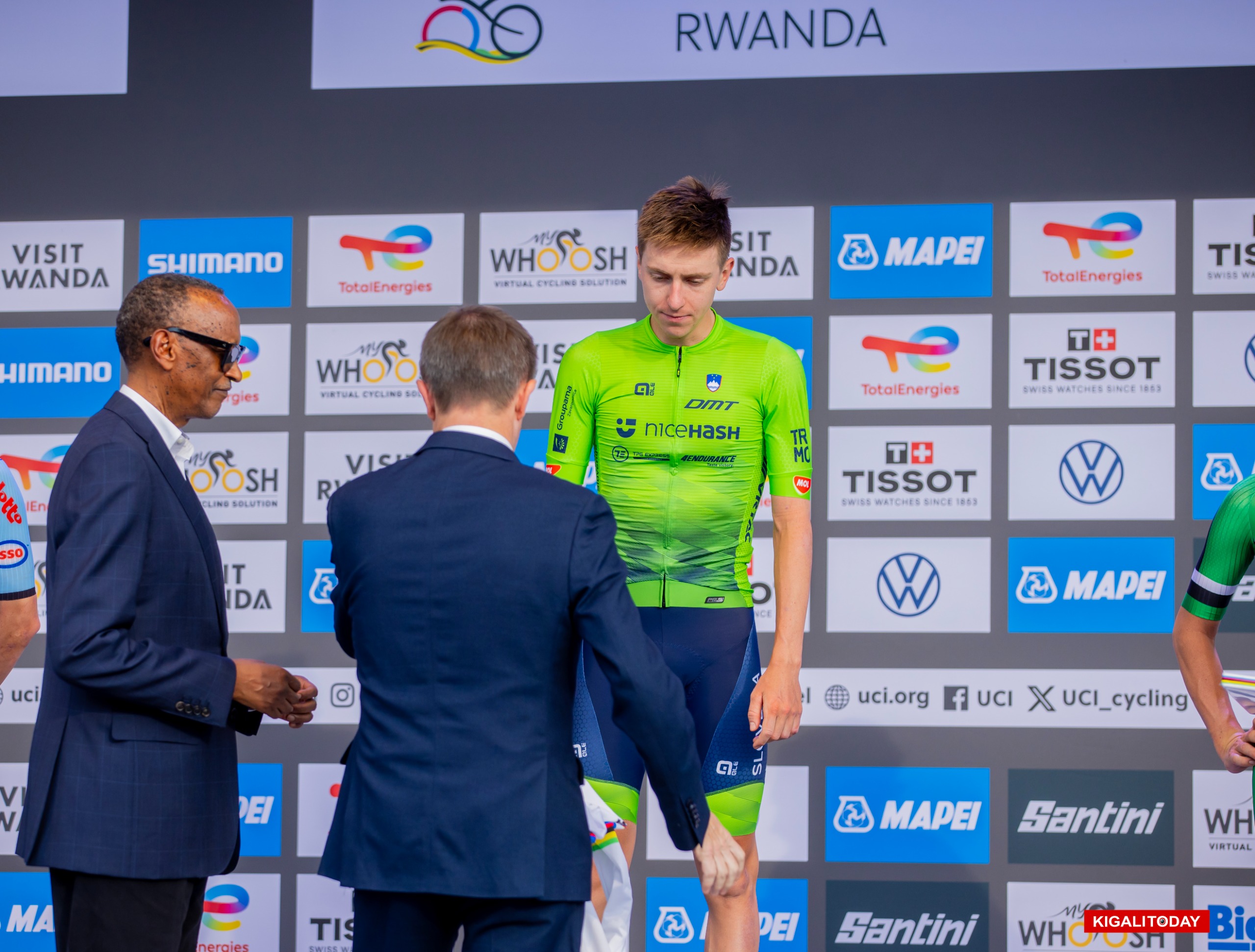 Umuyobozi wa Banki ya Kigali yatanze ibihembo by’abakinnyi batatu ba mbere muri Shampiyona y’isi y’amagare, icyiciro cy’abagabo mu gusiganwa n’igihe.