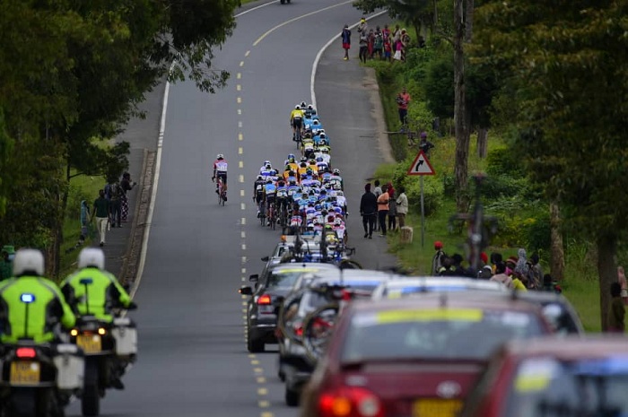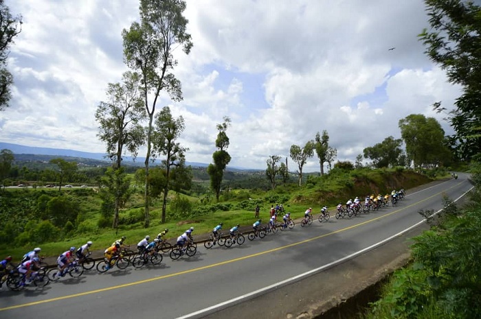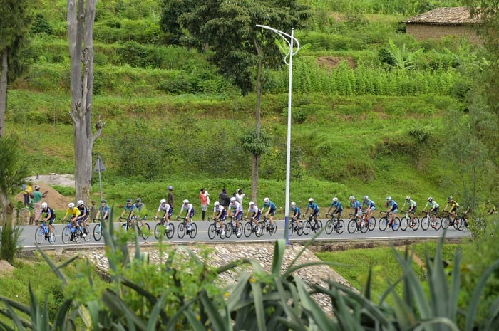 Nyuma yaho igikundi cy’abakinnyi 32 kirimo Ferron na Gaillard (D.Energie), Eyob Metkel ( Terengganu), Restrepo na Bisolti (Androni), Lagab (Algérie),Mugisha (Rda),Main, Ormiston na Nigrini (Pro Touch), Sevilla (Medellin), Goldstein na Piccoli (Israël), Nsengiyumva (SACA), Pacher, Boileau na Gautier (B&B Hotels), Uhiriwe (Rwanda) ni bo bahise bayobora isiganwa kugera binjiye mu mujyi wa Huye.