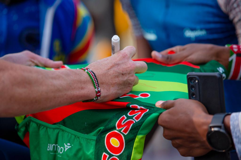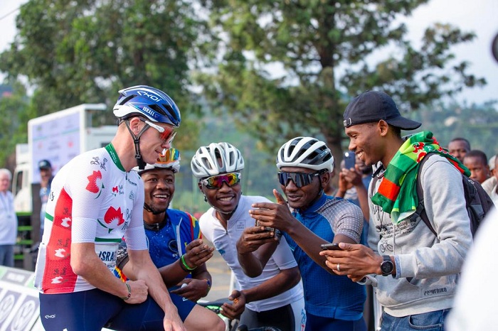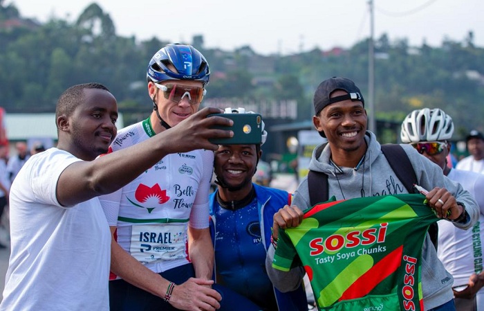 Ubwo isiganwa ryatangiraga kuri uyu munsi, abakunzi b’uyu mukino w’amagare bamugaragarije urukundo, ari nako buri wese yifuza gufata agafoto na we.