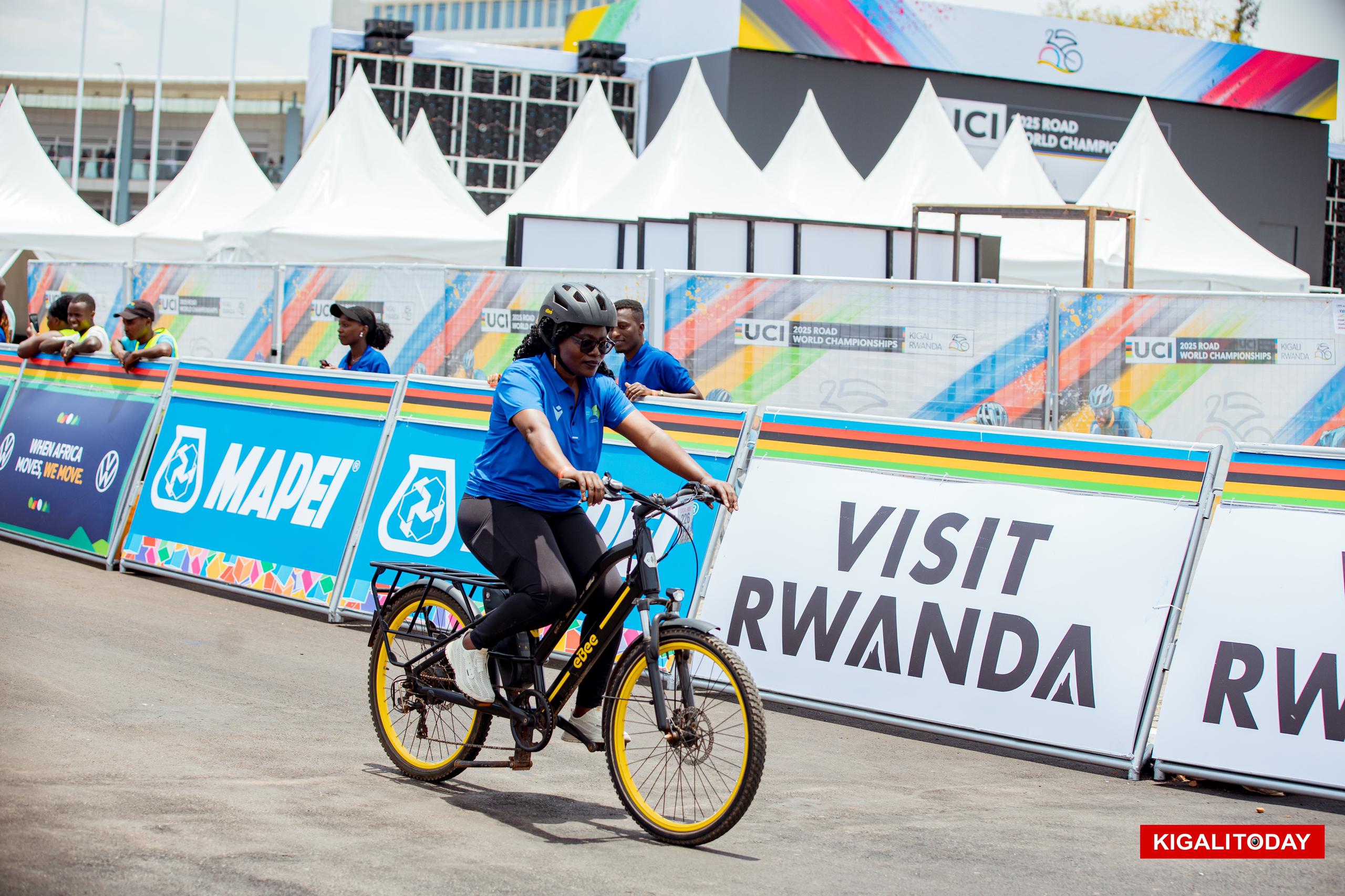Minisitiri wa Siporo Nelly Mukazayire uri mu basiganwe byo kwishimisha mbere y’uko kuri iki Cyumweru Shampiyona y’Isi y’Amagare 2025 itangira, yavuze ko yabonye kunyoga igare bitoroshye, ibigaragaza ko iyi shampiyona ashishikariza Abanyarwanda gukurikira izaba ikomeye.