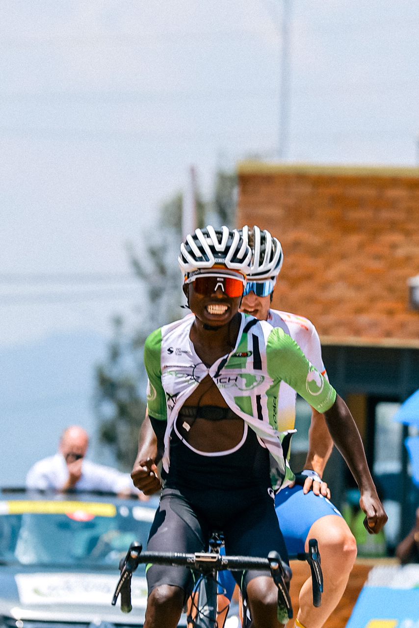Umunyarwanda Mugisha Moise kuva isiganwa rigitangira yari ari mu bakinnyi bagendaga bayoboye isiganwa ndetse anegukana amwe manota yo kuzamuka.