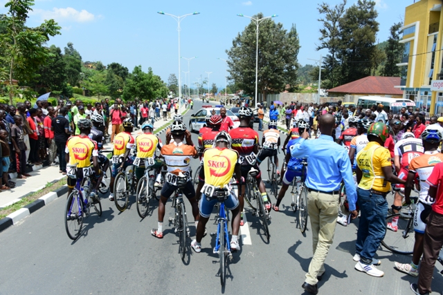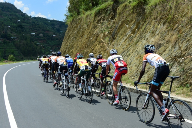 Bagihaguruka, abasiganwa bagiye mu gikundi kimwe ariko nyuma y’iminota mike bageze ahaterera, Nsengimana Jean Bosco atangira kubanikira kugeza bashoje isiganwa.