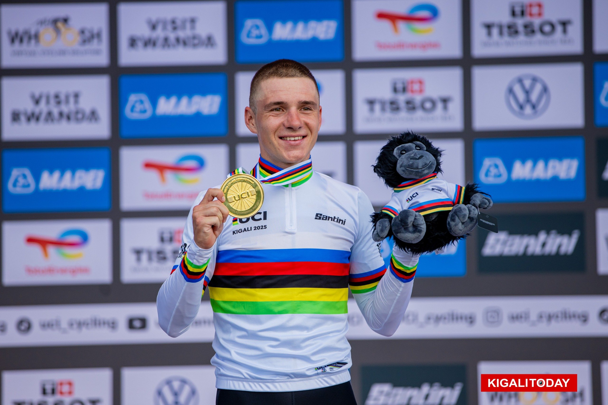 Evenpoel yahise yambikwa umudali wa zahabu ndetse n’umwambaro w’umukororombya uhabwa uwegukanye iyi shampiyona y’Isi muri buri cyiciro.