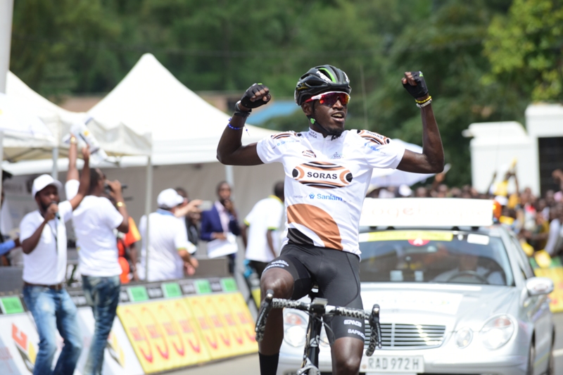 Uyu mwenda w’umuhondo "Maillot Jaune" yawambuye Areruya Joseph wari wayegukanye mu gace ka mbere ka Kigali-Ngoma, tariki ya 14 Ugushyingo 2016.