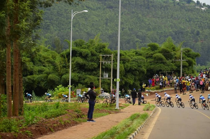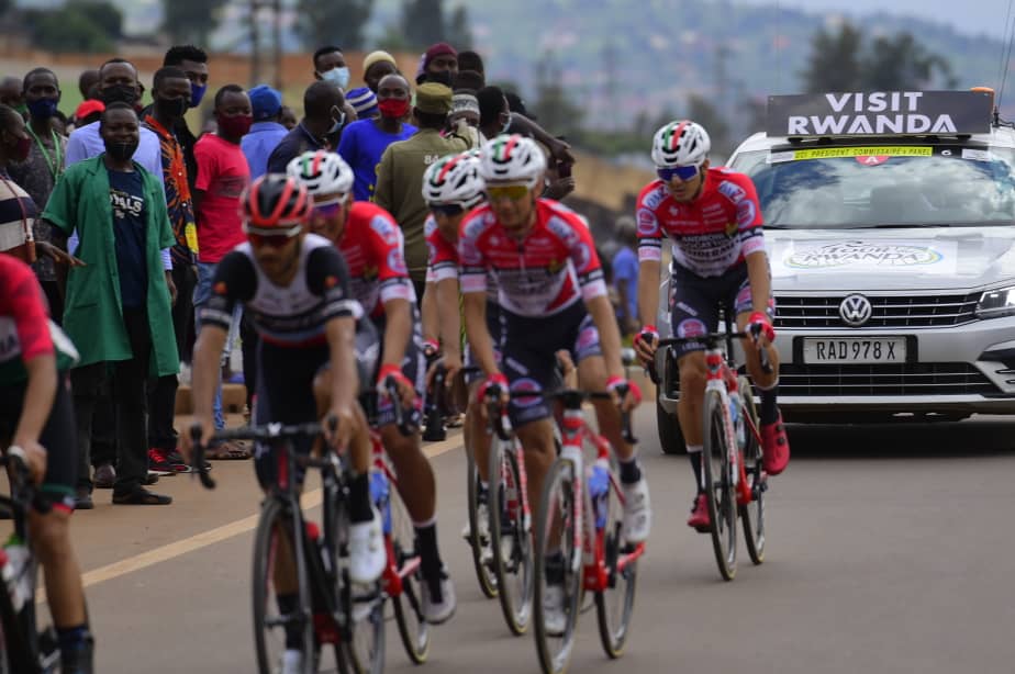Ku kilometero cya kabiri gusa abakinnyi 10 bahise basohoka mu gikundi, abo bari Hakizamana (SACA), Lagab (Algérie), Quintero (Terengganu), Ferron (Total-Direct Energie), Uhiriwe (Rwanda), Rolland (B&B Hotels), Manizabayo (Benediction), Nsengimana (Rwanada), Goytom (Erythrée), Teugels (Tarteletto).
