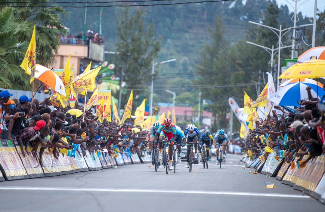 Bageze mu mujyi wa Musanze, abakinnyi icyenda nibo basigaye bari guhatana ngo begukane agace k’uyu munsi, ariko umunya-Eritrea w’imyaka 18 Biniam Girmay