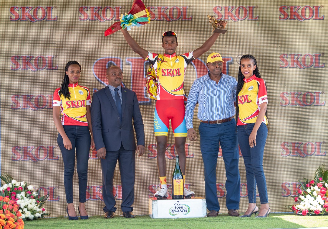 Yaje gutsinda Areruya Joseph bahanganiye muri mtero za nyuma, yegukana agace ka Gatanu ka Tour du Rwanda 2019.