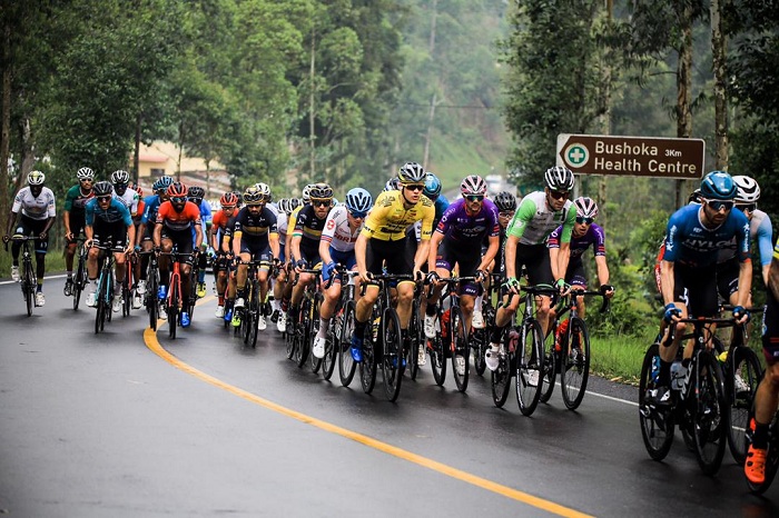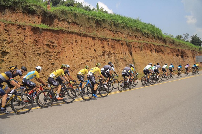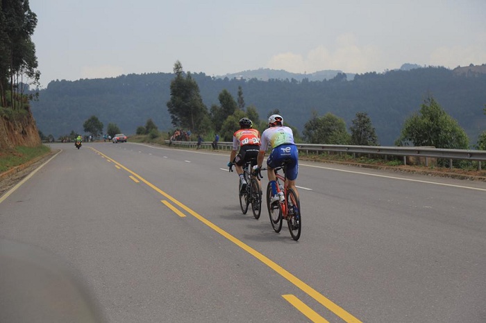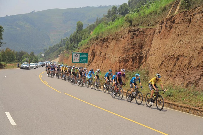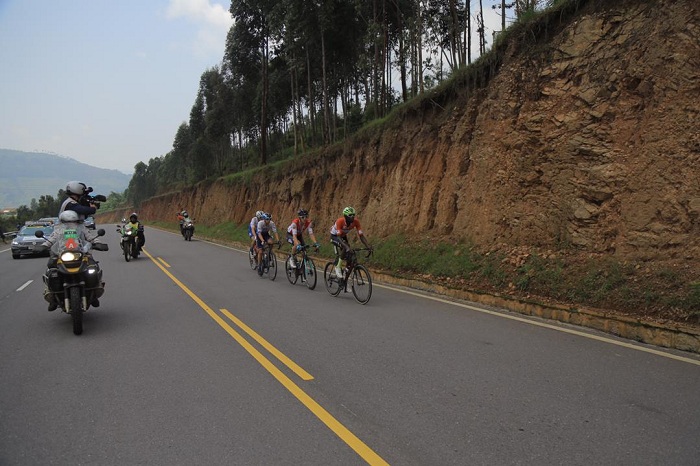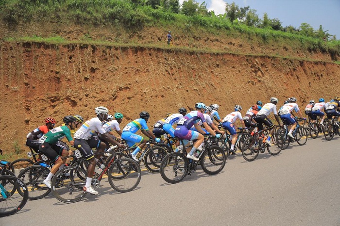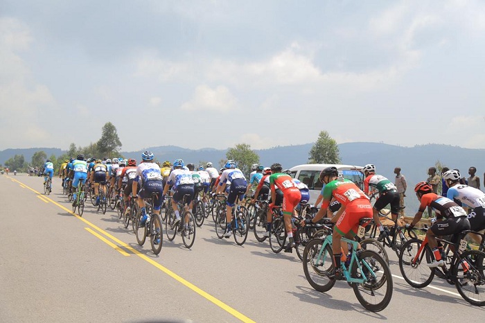 Bageze mu mujyi wa Gicumbi, Nsengimana Jean Bosco n’abari batangiye kuyobora isiganwa baje gusigara, igikundi nacyo kiza gushyikira abakinnyi b’imbere.
