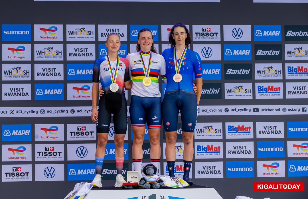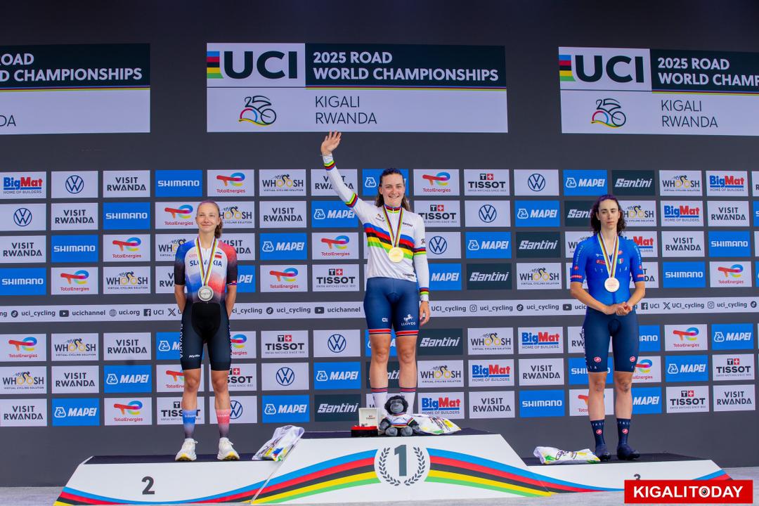 Uyu mukobwa ukiri muto si ubwa mbere yambaye umudari wa UCI Road World Championship kuko yagiye atsinda mu marushanwa y’abato kugeza kuri iyi ya Kigali aho ayegukanye mu cyiciro cy’abatarengeje imyaka 23.