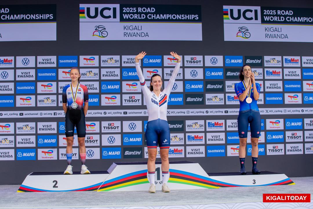 Backstedt Zoe W’inyaka 20 ukomoka mu Bwongereza yegukanye isiganwa rya UCI World Road Championiship mu cyiciro cy’abakobwa batarengeje imyaka 23 basigabwa n’igihe ku giti cyabo akoresheje iminota 30 n’amasegonda 56.