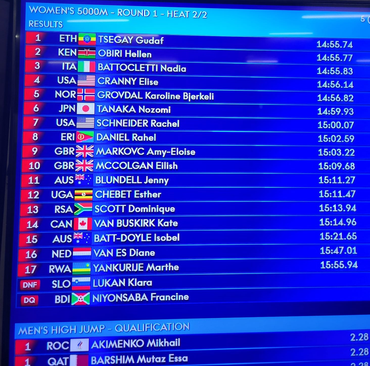 YANKURIJE Marthe wakinnye umukino wo gusiganwa ku maguru ku ntera ya Mtero 5000, yabaye uwa 17 mu gihe inyuma ye haje babiri barimo umwe utabashije gusoza, ndetse na Niyonsaba Franice wari wabaye uwa kane ariko aza guhanwa kubera ikosa yakoze mu gihe cyo gusiganwa.