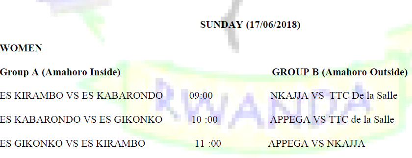 Nyuma y’iyi mikino y’amajonjora mu matsinda, hateganyijwe imikino yo guhtanira umwanya wa Gatatu n’uwa mbere, imikino izabera ku Kimisagara ku cyumweru nyuma ya Saa Sita.