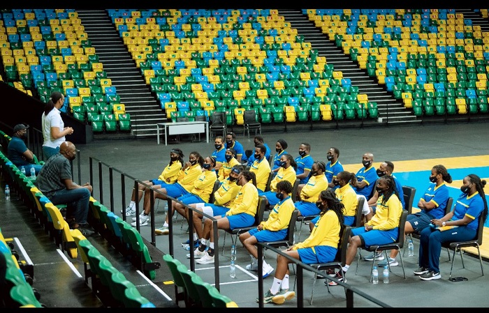 Minisitiri wa Siporo Madame Aurore Mimosa Munyangaju yasuye ikipe ku Cyumweru anakurikirana imyitozo yayo mu rwego rwo kubashyigikira no kubatera imbaraga mbere y’uko bakina umukino wa mbere.